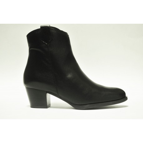 Botín tipo campero con cremallera lateral en color negro. Atura tacón 4 cms aprox. Hecho en España.