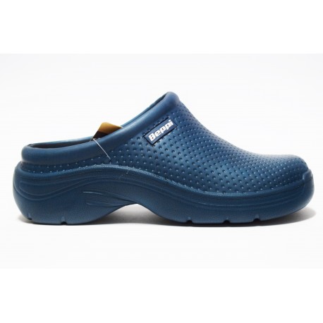 Zueco pala lisa imitación calado con plantilla extraíble en piel,color azul. Tacón 4 cms plataforma 2 cms aprox.